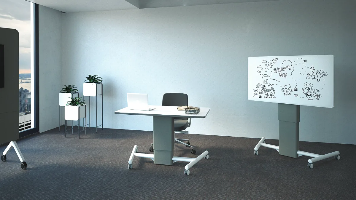 Diferentes combinações favorecem a integração e potencializam novas habilidades. Adágio é união de ergonomia e multifuncionalidade, em estruturas com regulagem de altura por sistema de pistão a gás. Adágio oferece opção de ser utilizada como lousa.